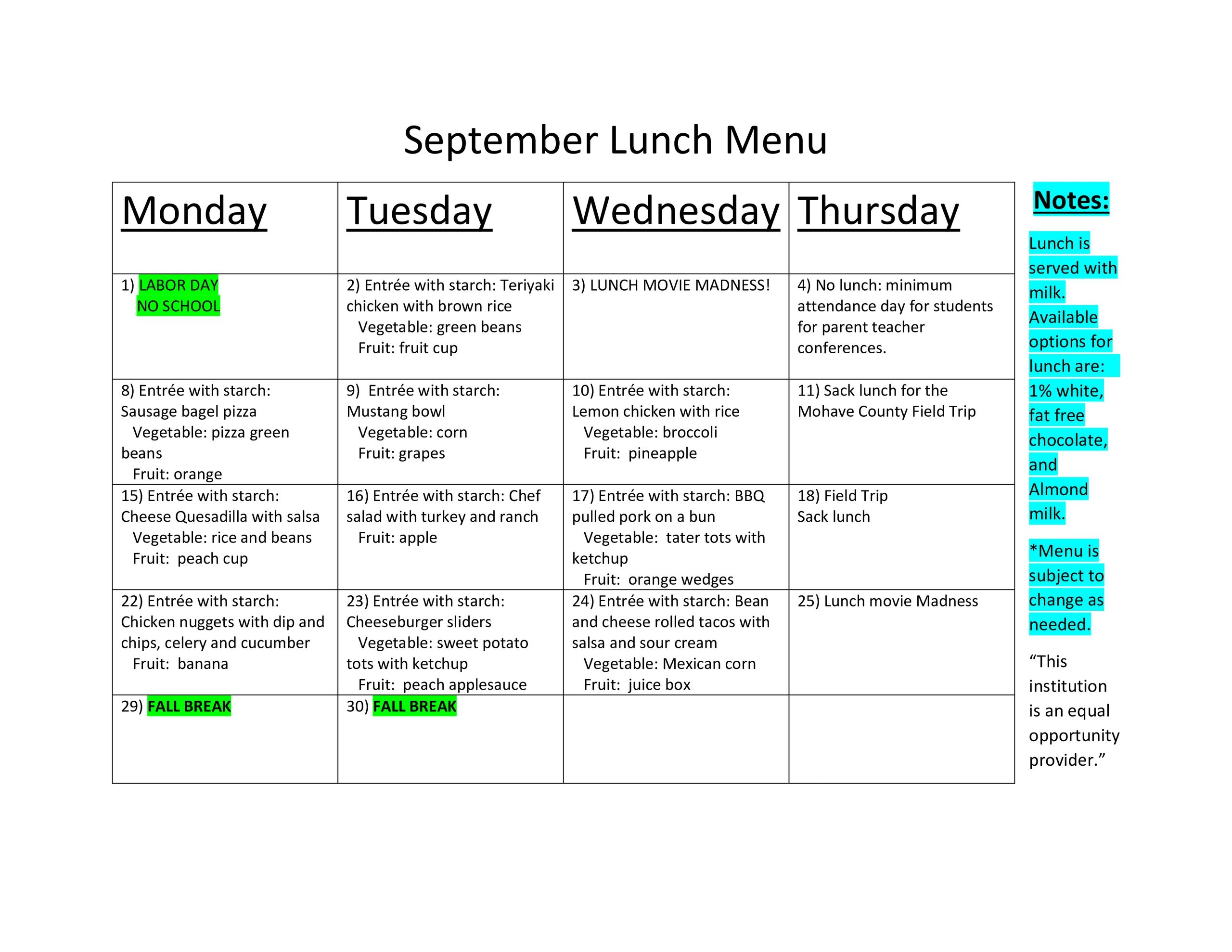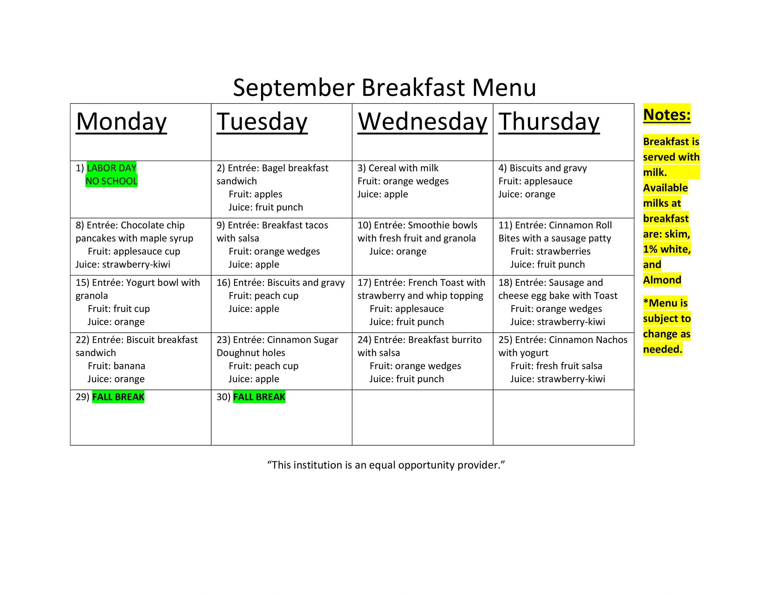 The menu is subject to change.
